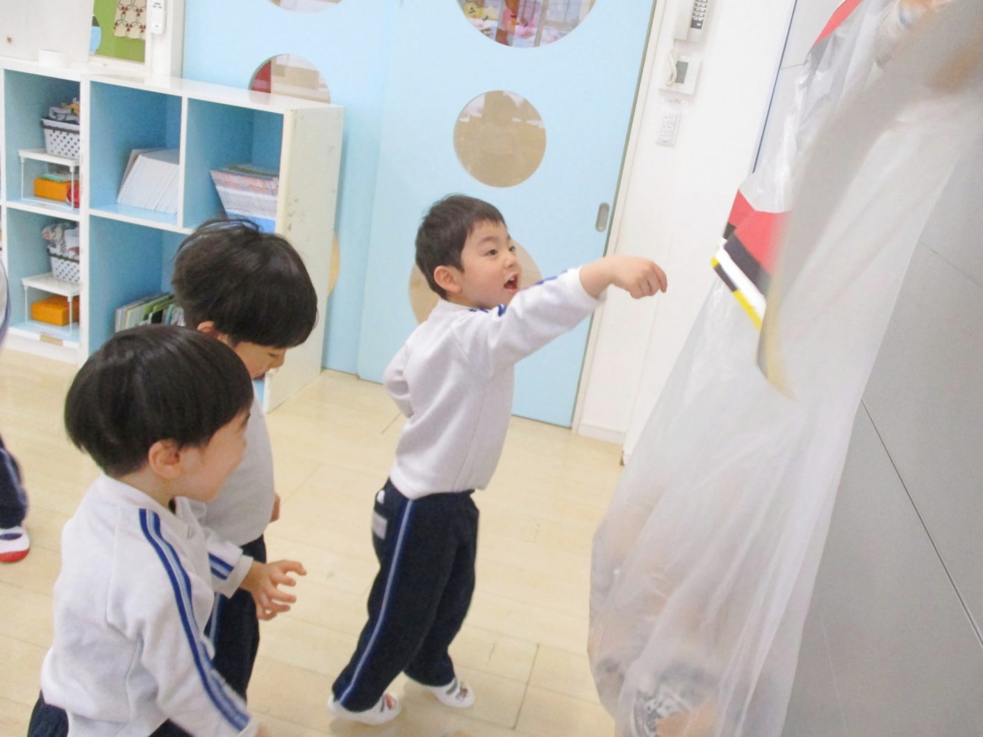 続いて、鬼のイラストを使った的あてに挑戦しました。
