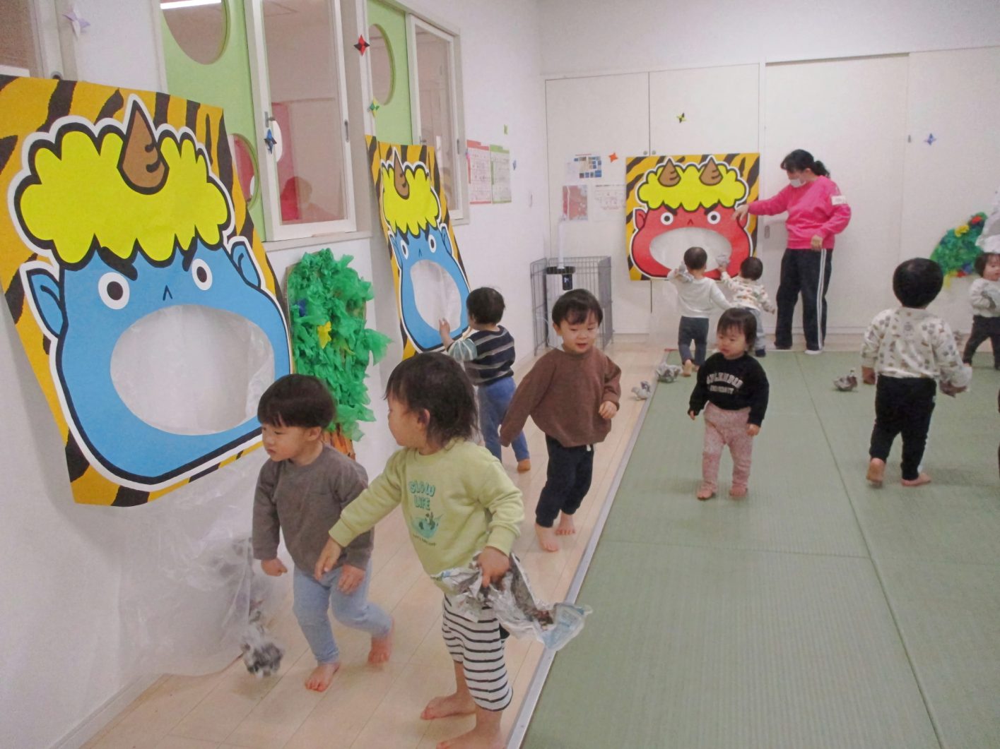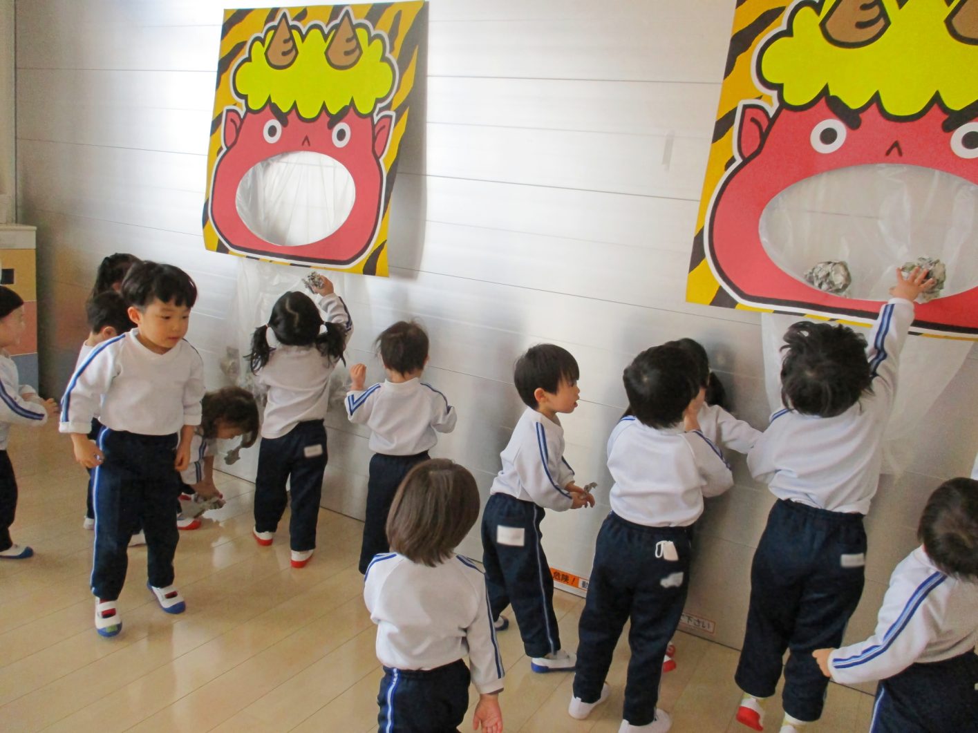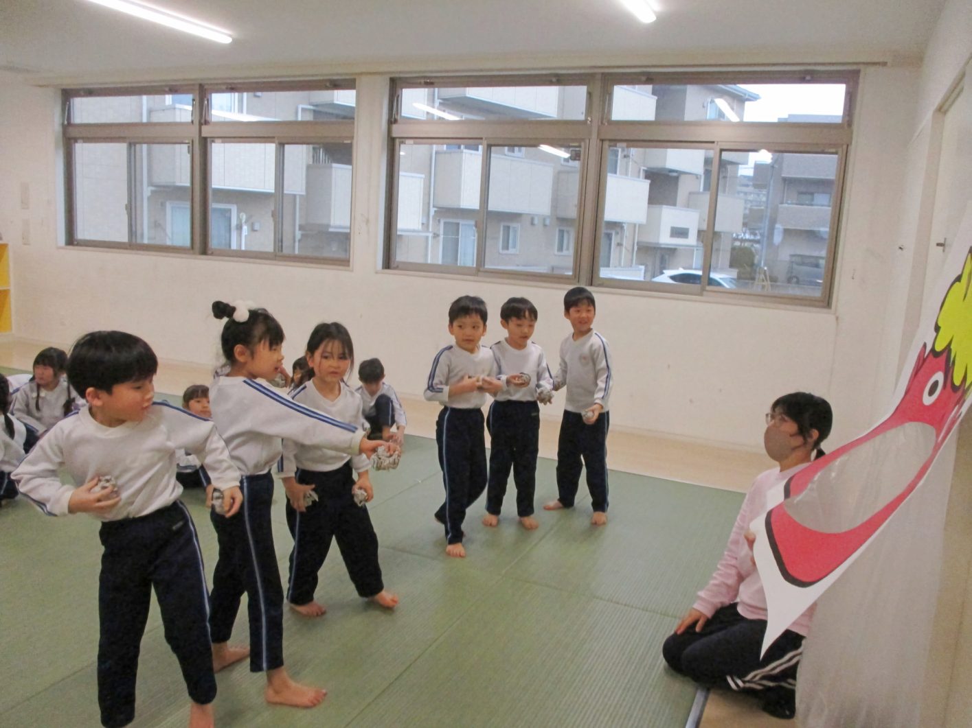「鬼は外!福は内!」の声が、園内に元気よく響きました。