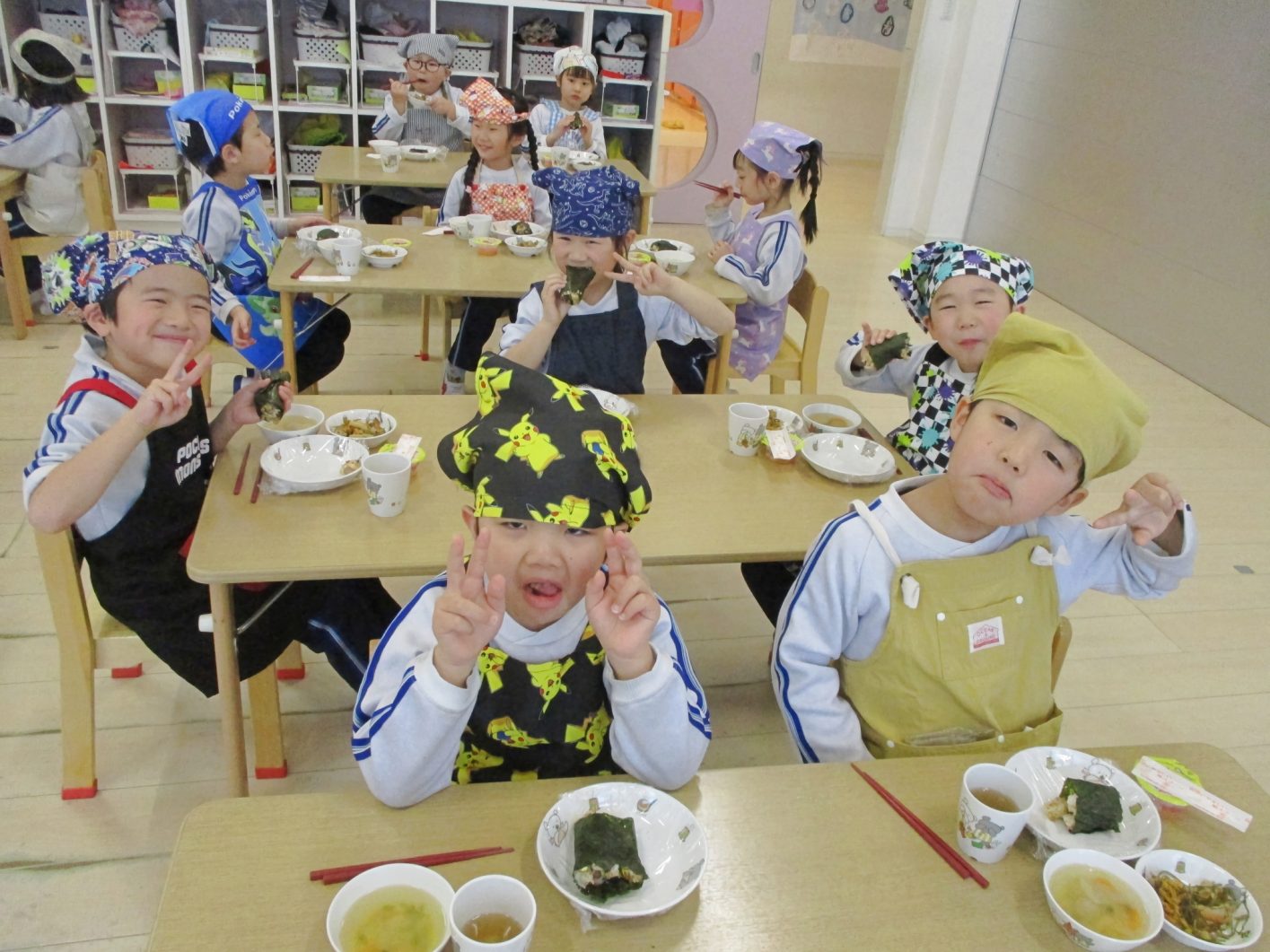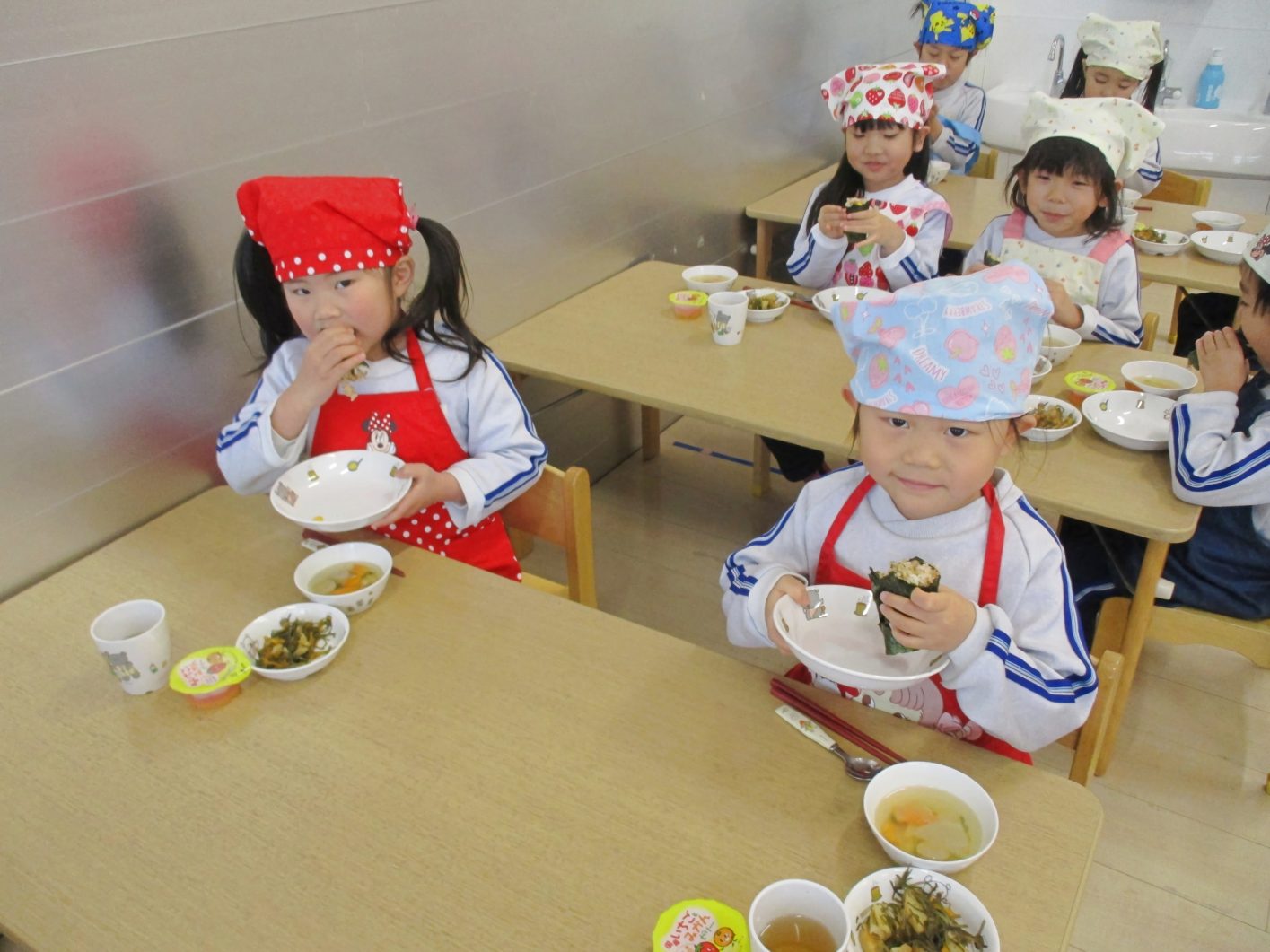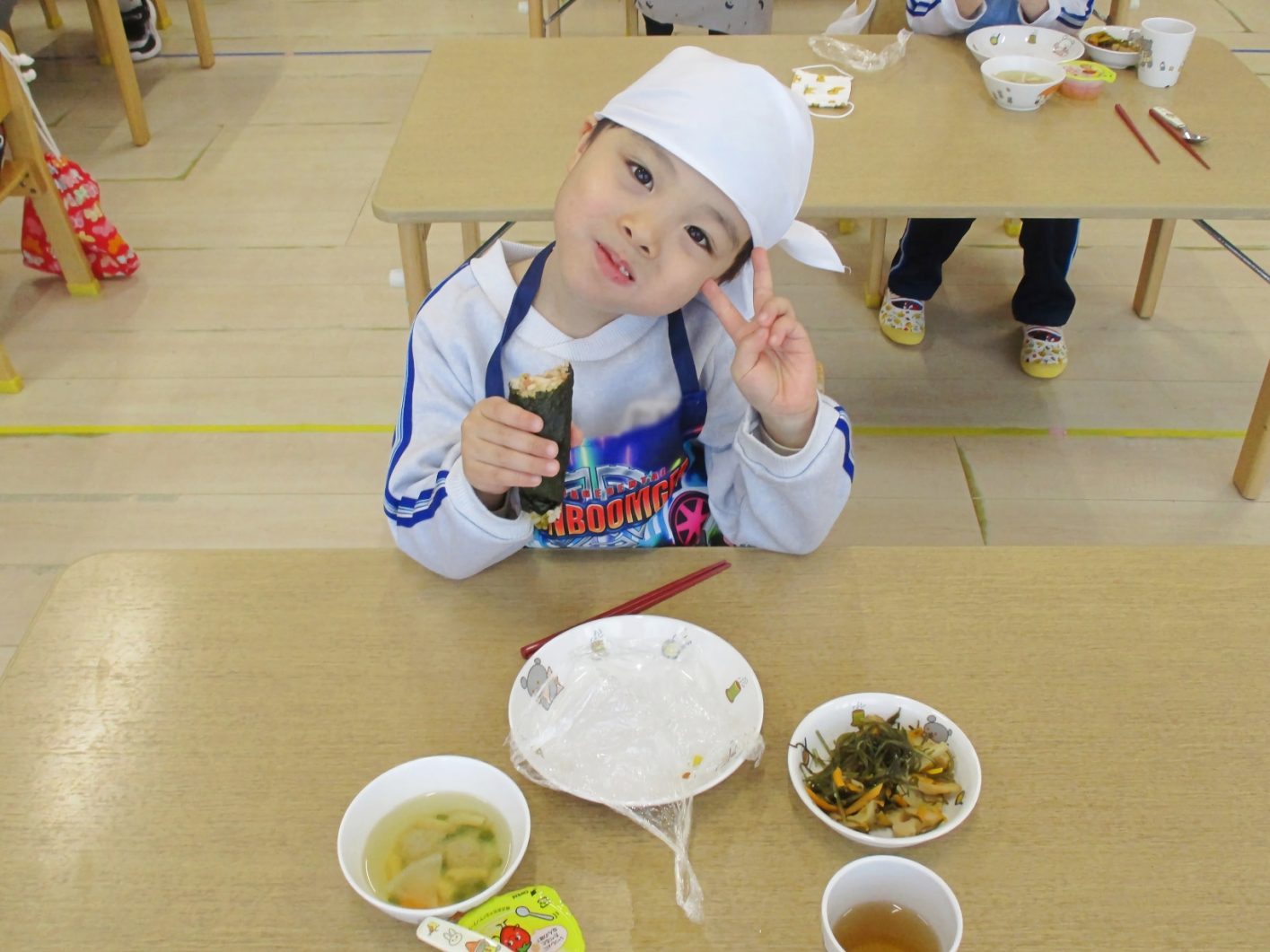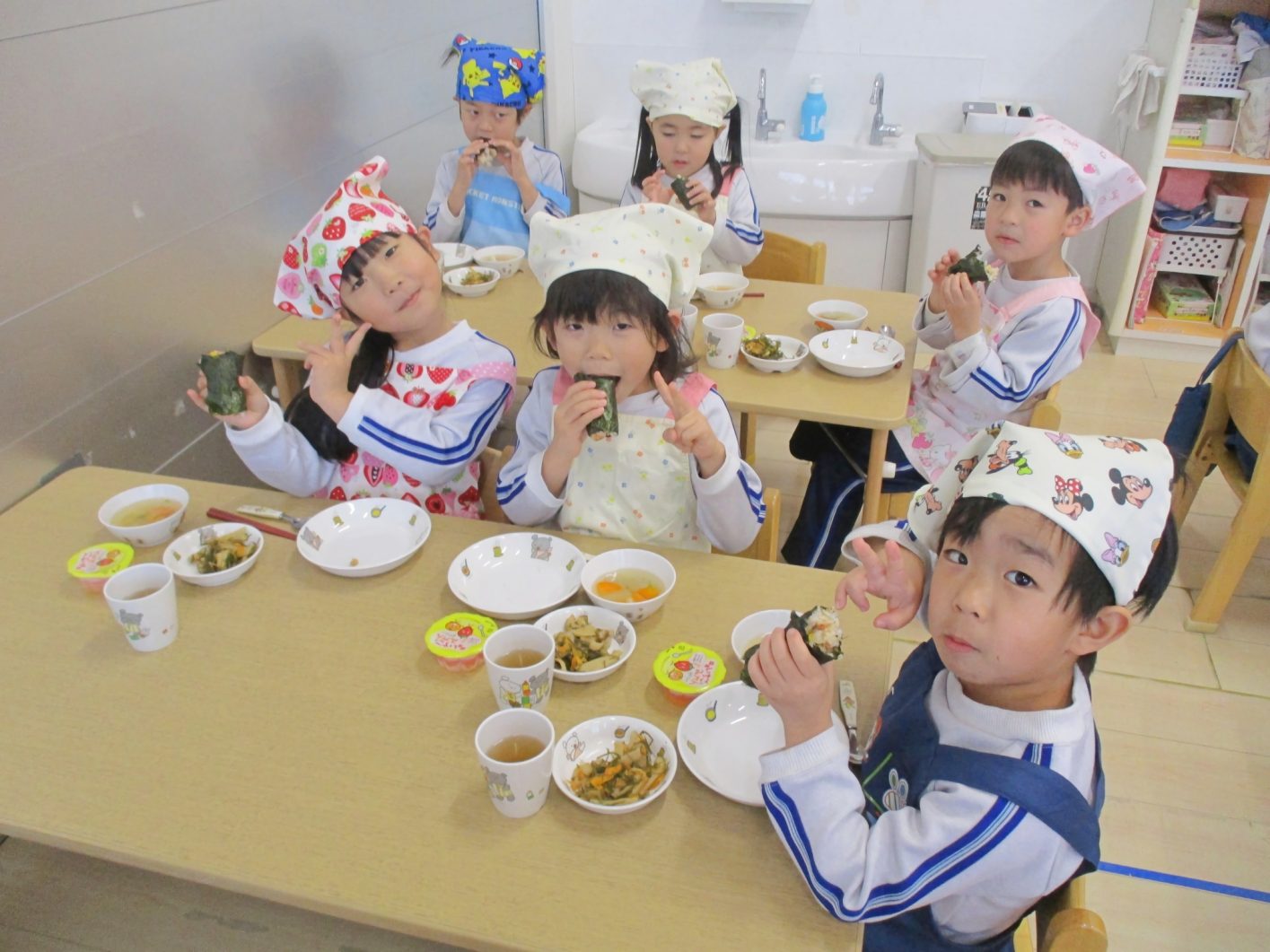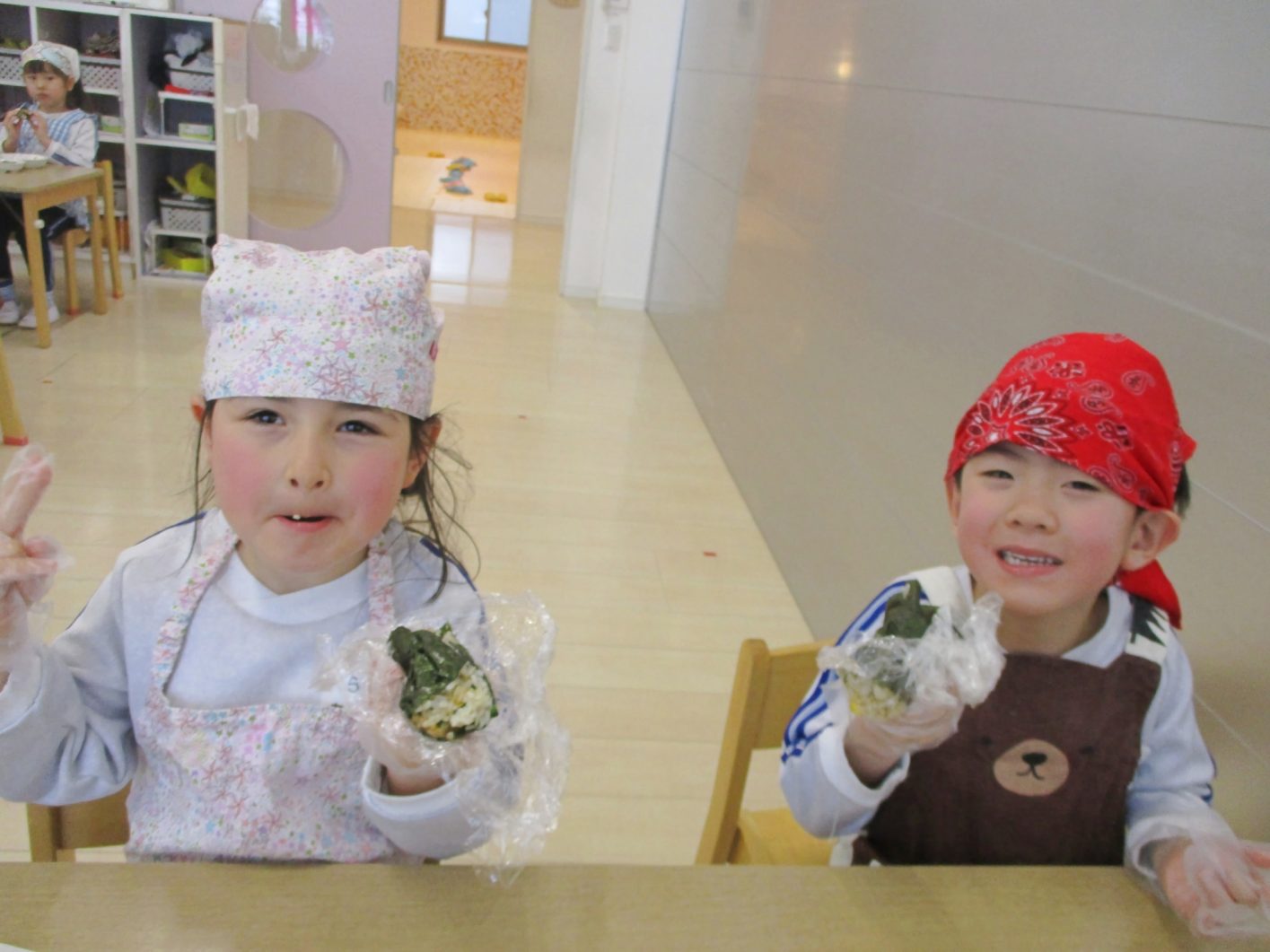 4・5歳児の子どもたちは、恵方巻づくりにも取り組みました。